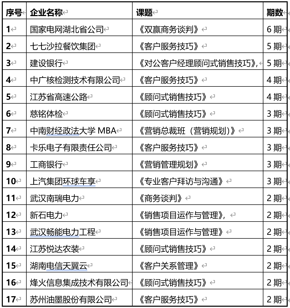 成熟課程:深入研究國(guó)內(nèi)外知名的營(yíng)銷及銷售理論,并結(jié)合企業(yè)實(shí)際對(duì)課程本地化,“成熟理論+本地化內(nèi)容”的課程結(jié)構(gòu),使課程更具有實(shí)操性和指導(dǎo)性幫助參訓(xùn)者學(xué)而即用之。
